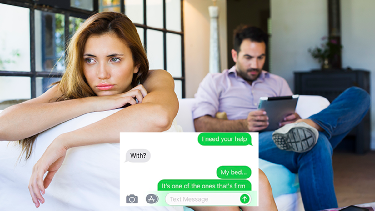 She goes on to describe how one side of her bed is soft and the other side is firm. Instead of picking up on the hints, her neighbor recommends that she reach out to their mutual friend's husband. She responds that she'd prefer the help of the neighbor, which he questions.
